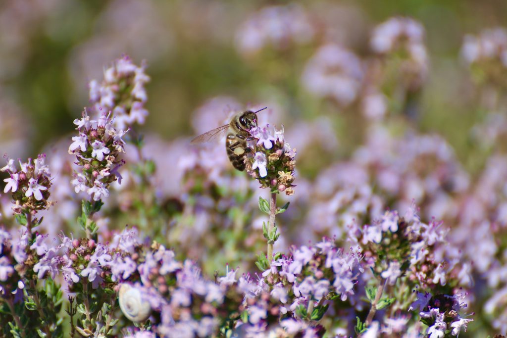 En ce moment, en Provence, c’est la pleine floraison du thym sauvage. Cette plante vivace aromatique tapisse à certains endroits des kilomètres de garrigue …