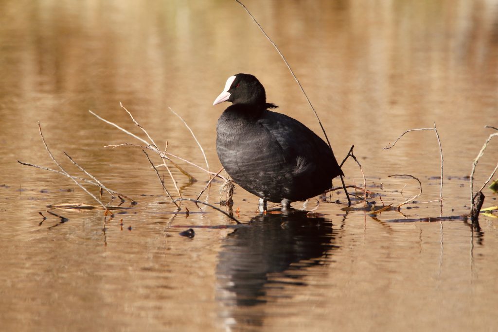 Près de lui, un foulque macroule aux formes généreuses profitait également des rayons du soleil …