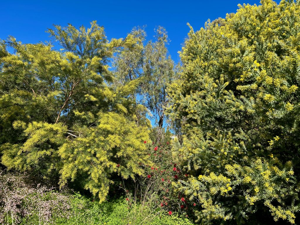 Cet arbre aux feuilles plumeuses d’un joli bleu-vert est le joyau des jardins ! Originaire d’Australie, il appartient au genre acacia et à l’ordre des mimosées. Le climat d’une grande douceur du littoral et son ensoleillement font qu’il y pousse à profusion.