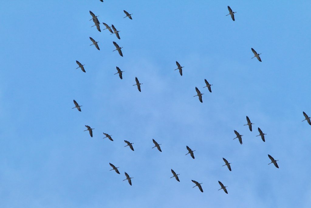 Il y a d’abord cette clameur puis, peu à peu, des formes apparaissent. C’est le ballet des grues cendrées …